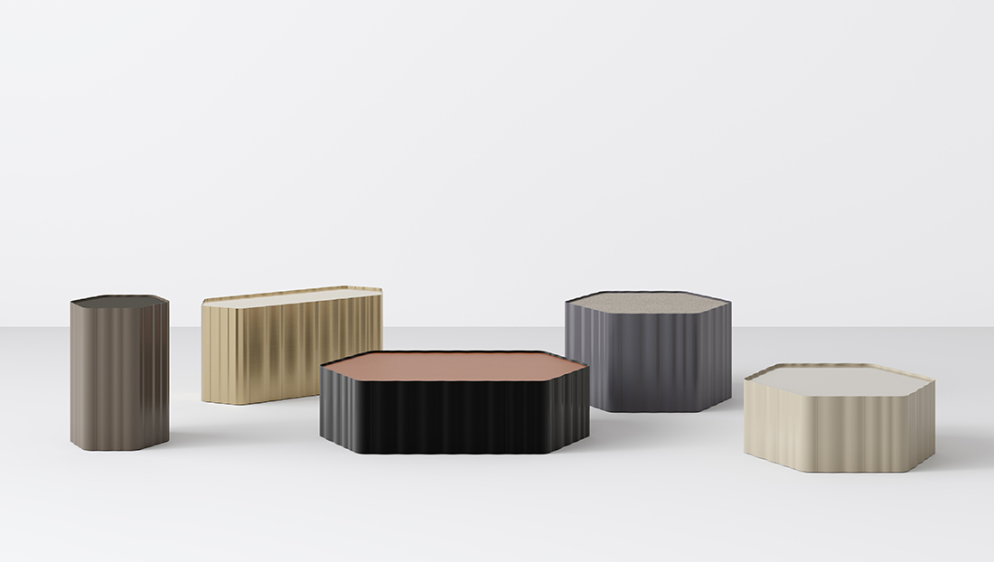 The aesthetic impact of the Freehand collection can be as minimal or extreme as a client wishes. Of the 16 powdercoat paint colors available on the base, eight offer the quiet beauty of a more nature-based palette, while the remaining eight “fashion” colors enable a louder expression. Accompanying these are five precious metal finishes, including gold, brass, silver, copper and nickel. Top material options encompass multiple colorways of leather, felt, linoleum and glass. Along with the 21 base colors and top materials, five geometric base shapes and three heights allow the Freehand collection to be sprinkled across an environment, or command it through the use of multiples. Whether top and base colors are monochromatic and soft, or contrasting and bold, the essence of the collection remains true and creates a calming monolithic presence. This versatility in application paired with the countless finish, material and scale options creates a product that can impact any built environment to a degree determined by the end-user.