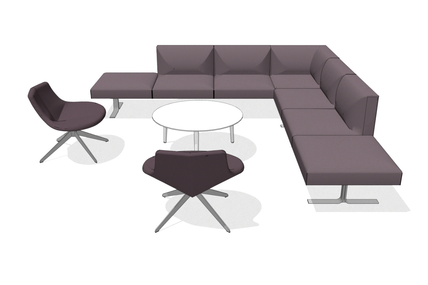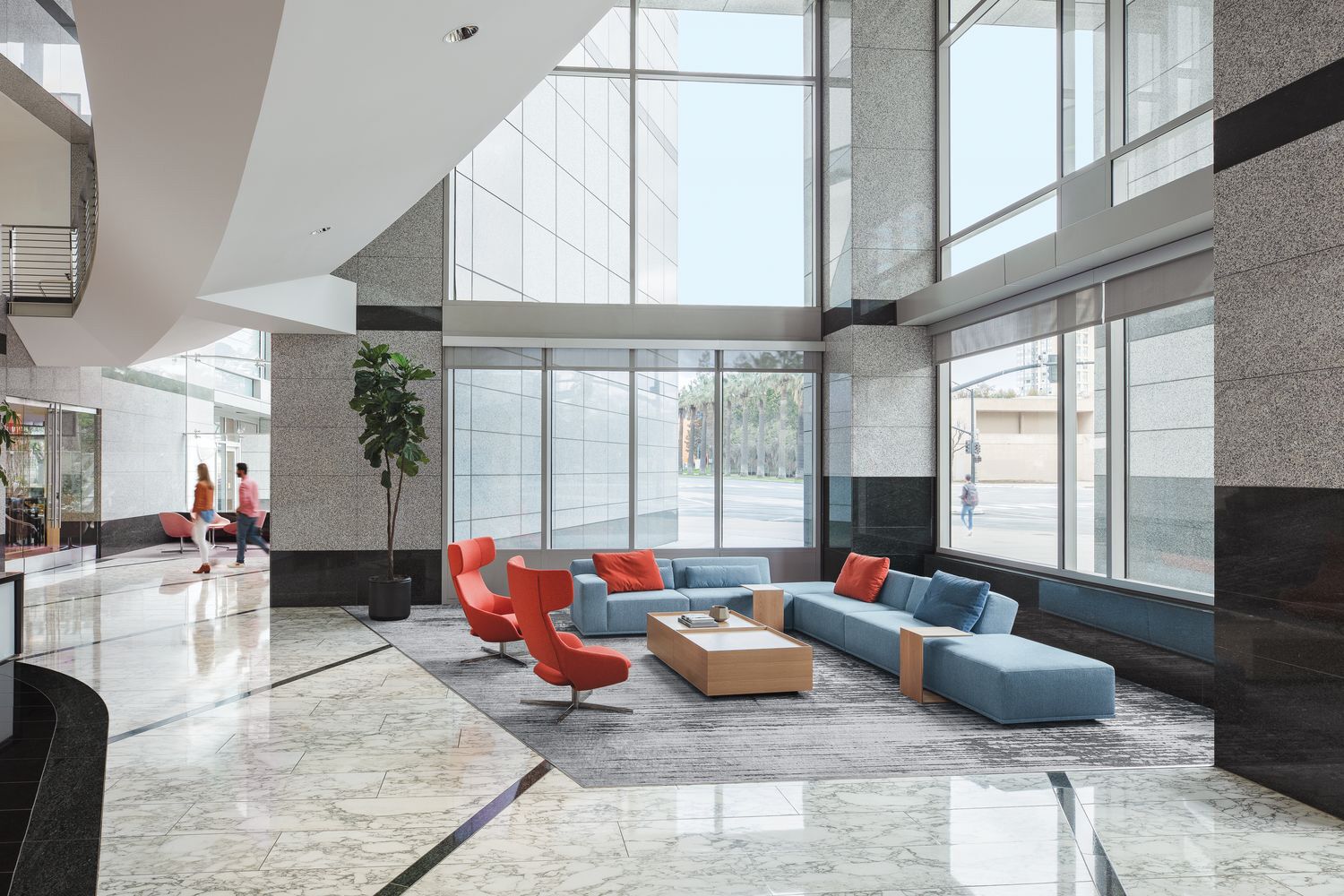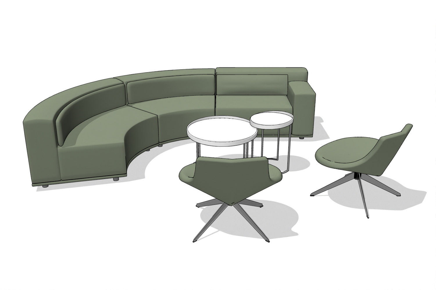 Public settings live within high-traffic circulation spaces. Amid the continuous movement of people around buildings and across corporate campuses, public settings help companies express their brand identity, organizational values and culture. They give employees a place to pause as well as create opportunities for serendipitous connection.