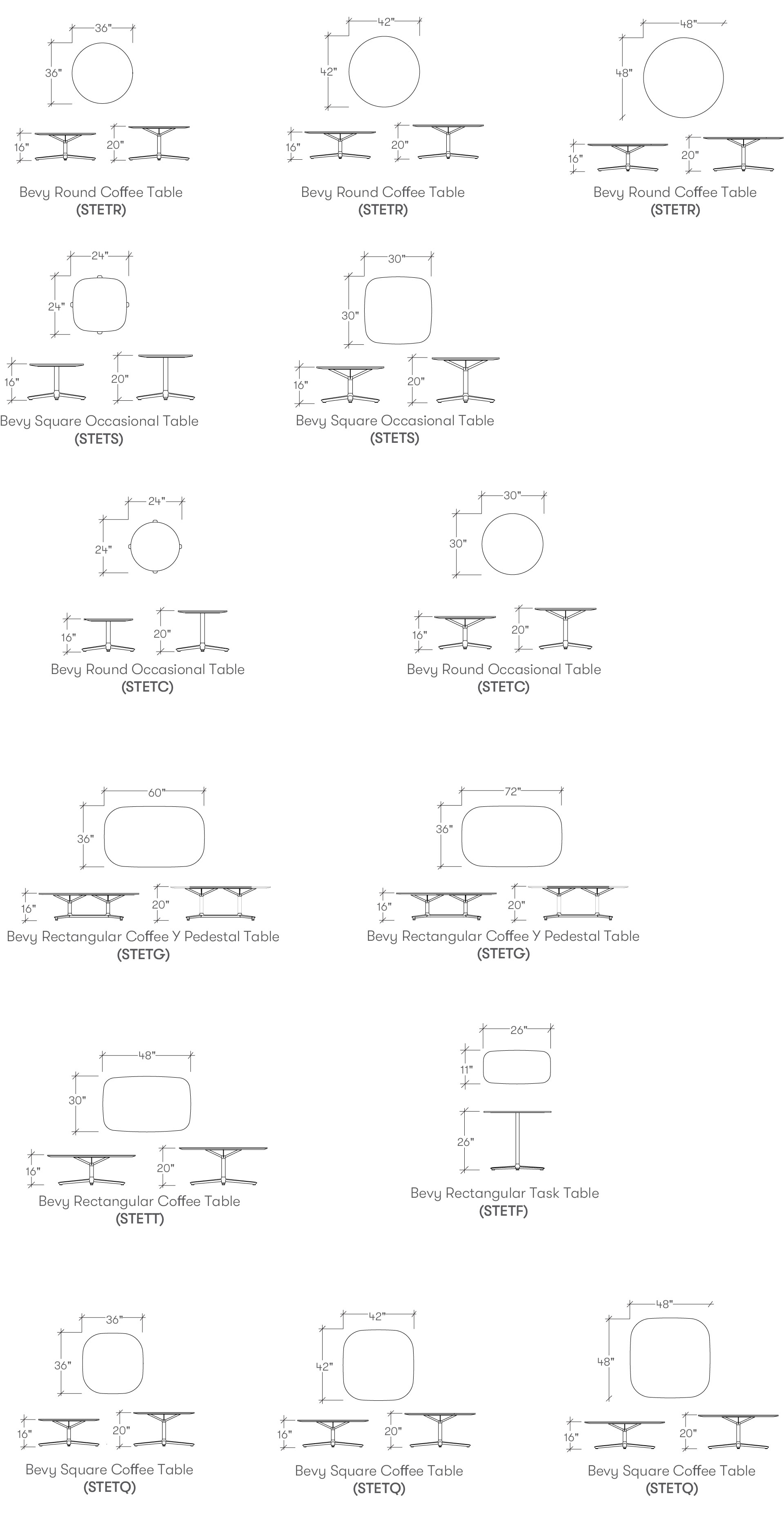 With various top sizes, surface materials and base finishes, Bevy offers true personalization of any scenario requiring tables.
