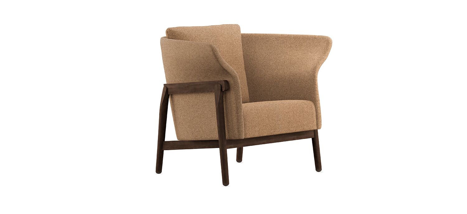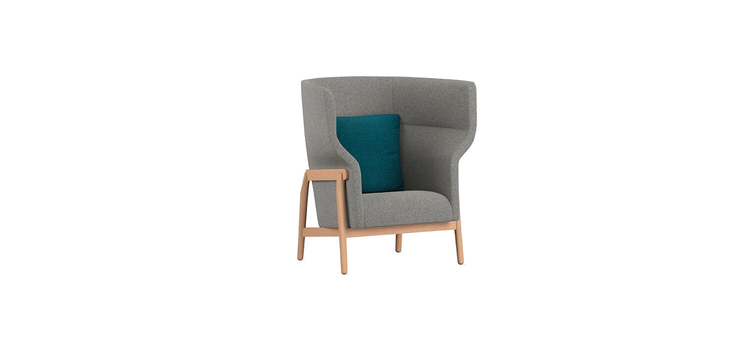 Havn enables open lounge settings, or focused work with its high back. A highly sculptural back that nestles in the craft-oriented frame somewhat "pinches" it together to make the upper form. The back is wrapped organically within the wooden frame, surrounding a soft bolster pillow for comfort. The curved wooden frame cradles the upholstered seat with a carefully crafted void in the rear that makes it visually stunning.