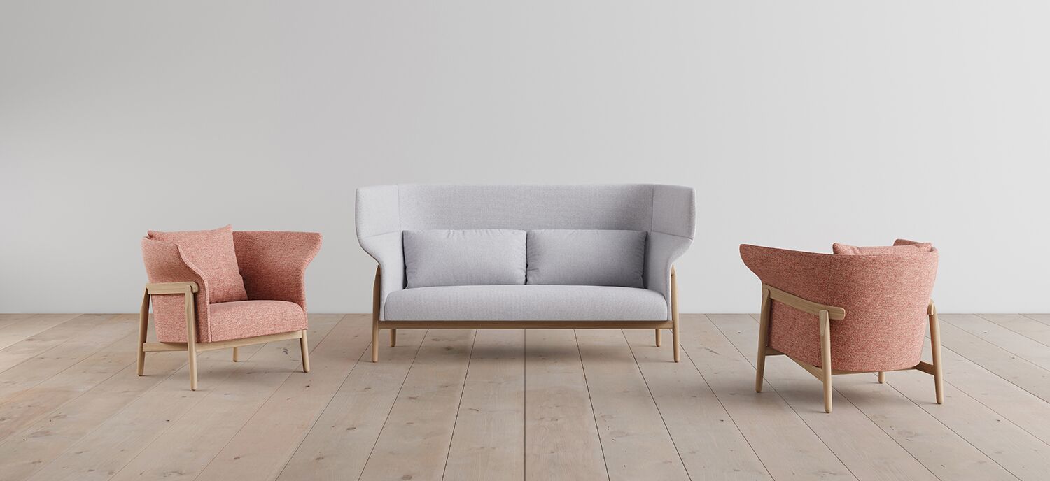 Havn is a Scandinavian-inspired seating collection comprising a winged lounge chair and settee. In Danish, "havn" means harbor, suggesting that this lounge chair is a good place to "dock" during the day with a coffee or a book. It's a retreat from the norms of everyday work.