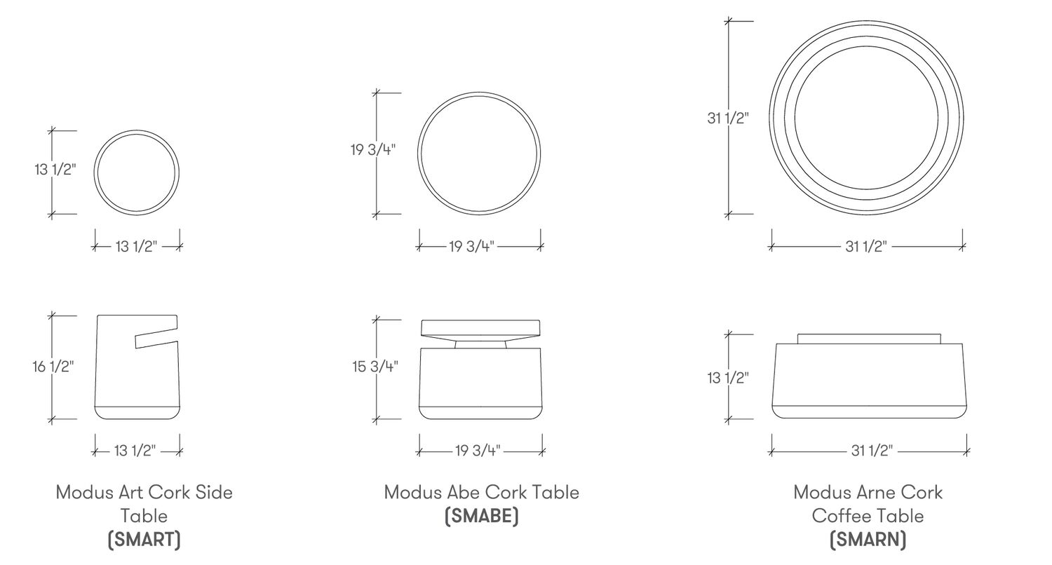 At the end of their lifecycle, the Modus Art/Abe/Arne tables can either be mechanically recycled into new products or composted, enriching the soil. Cork is a renewable resource that is harvested from the outer bark of the Mediterranean cork oak tree without causing harm, allowing the tree to regenerate. This sustainable cork harvesting supports communities in southern Europe and northern Africa while positively impacting the environment.