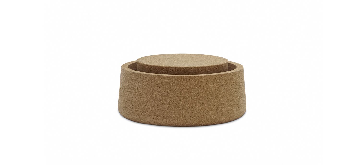 Crafted from 100% recycled cork materials left over from the wine bottle cork manufacturing process, these tables are bonded with a solvent-free binder. Cork is water-repellent, easy to clean, and offers sound-insulating properties, creating a memorable and cozy atmosphere.