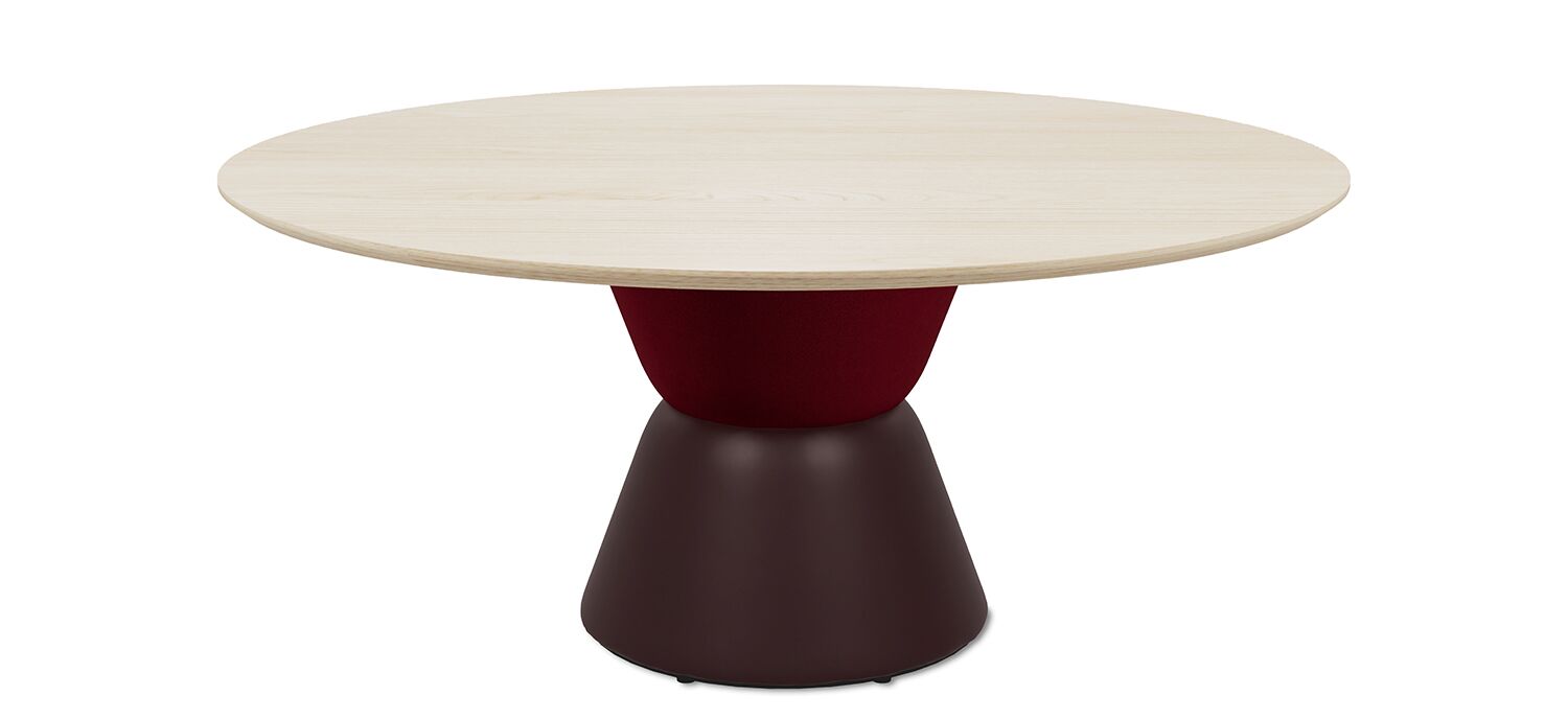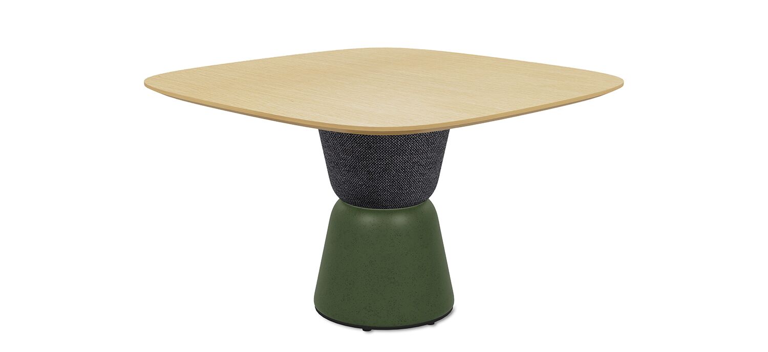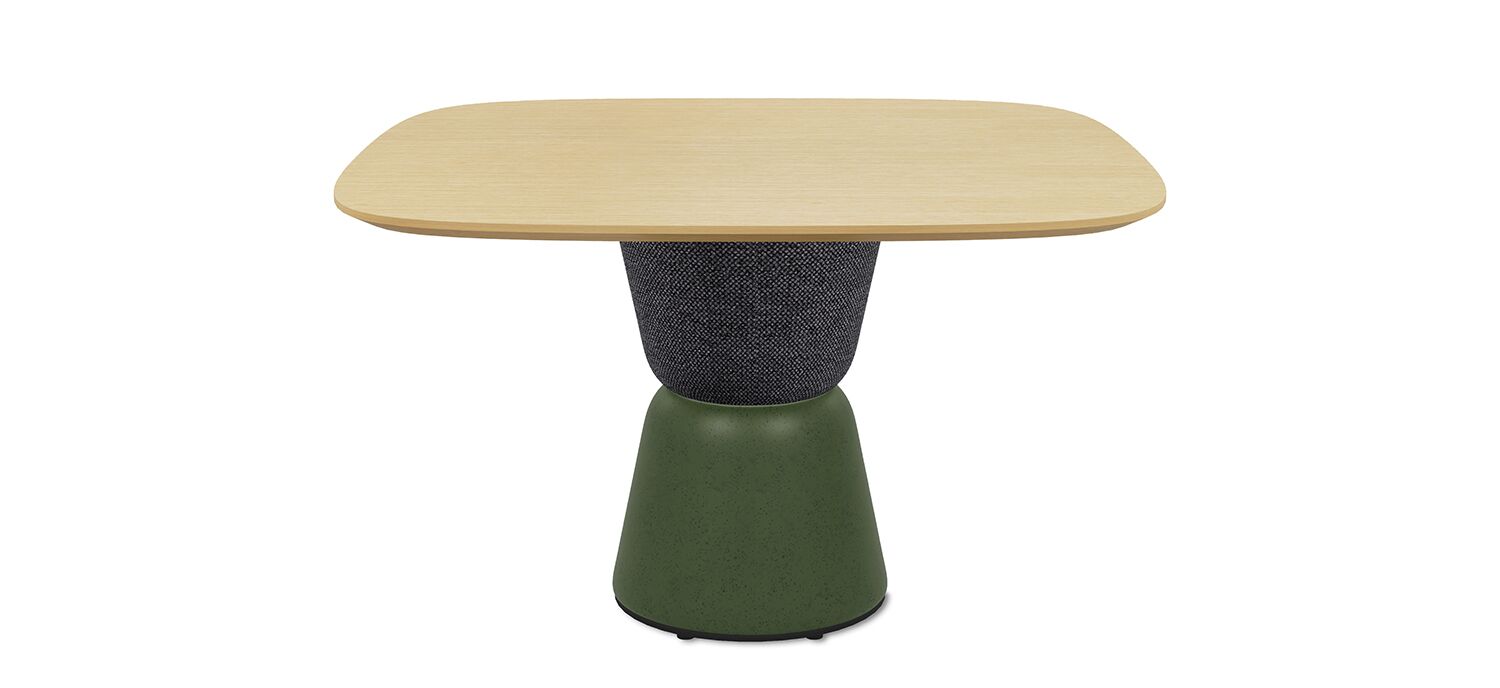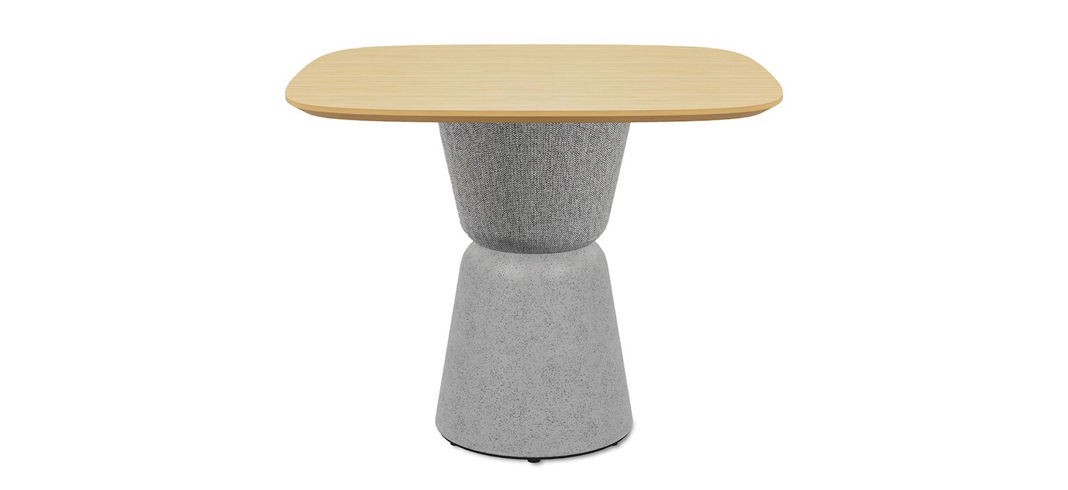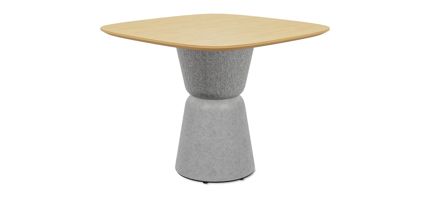 Designed with choice in mind, Ora features an hourglass shaped drum base that has the option of a durable polymer or fully upholstered finish that coordinates with seating and absorbs noise. Individual upper and lower base sections can be mixed and matched between polymers and textiles for an endless variety of applications. Tabletops are available in multiple heights and round, square or rectangular with soft corners, high pressure laminate or veneer surfaces, and a knife edge. Optional power adds functionality and cleanly routes power cords down the inside of the pedestal to exit at the base.