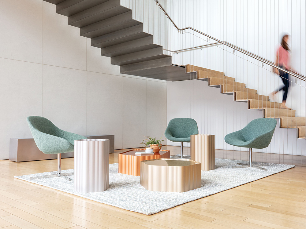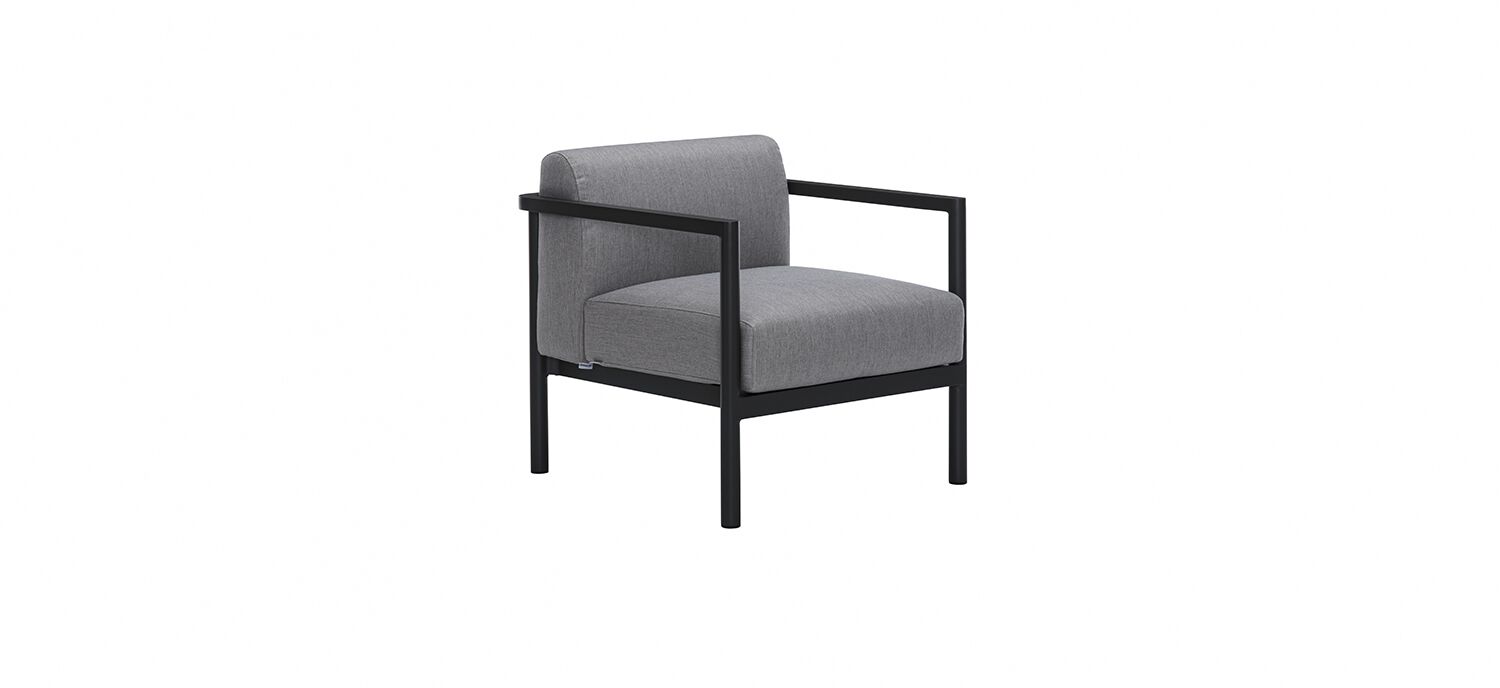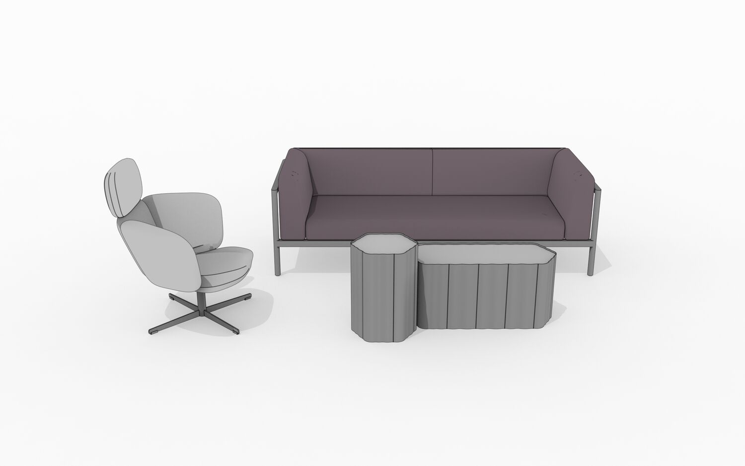 When specified for outdoor durability, Origin is equipped with cushion water barriers and various UV-resistant and weatherproof textile patterns and colors designed outdoor use. The tables come with solid or marbled HPL surfaces on a solid core, ensuring durability for indoor and outdoor settings. The aluminum frames of the chairs and sofas can be easily stacked, allowing for minimal storage space when temperatures drop.