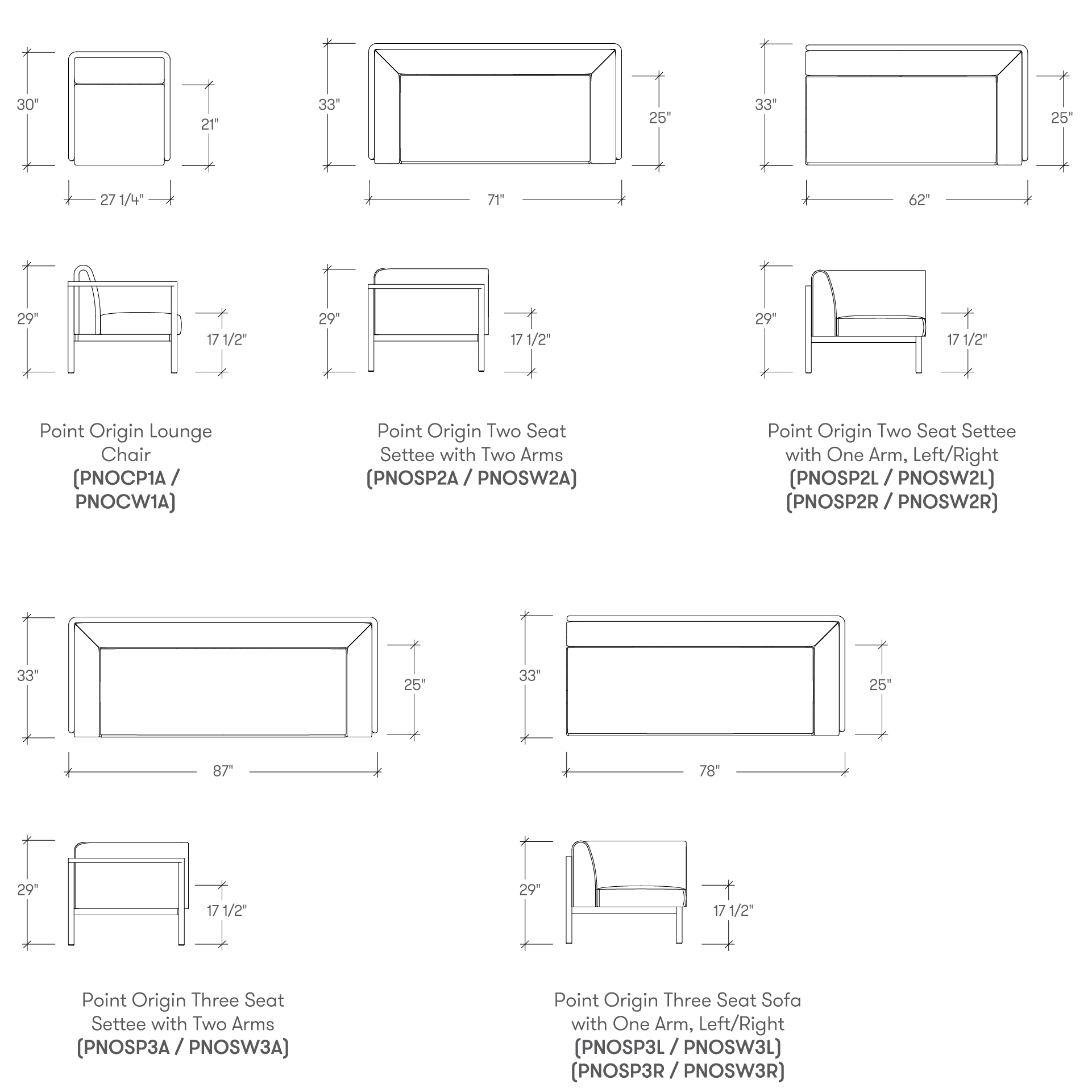 Featuring simple lines with discreet design gestures, Origin sofas can be used individually or grouped together with single-arm sofas to create larger configurations or L-shaped arrangements. Despite the simple appearance, the furniture is exceptionally comfortable. Origin features sturdy welded aluminum frames paired with thick foam cushions, available in a wide range of textiles.