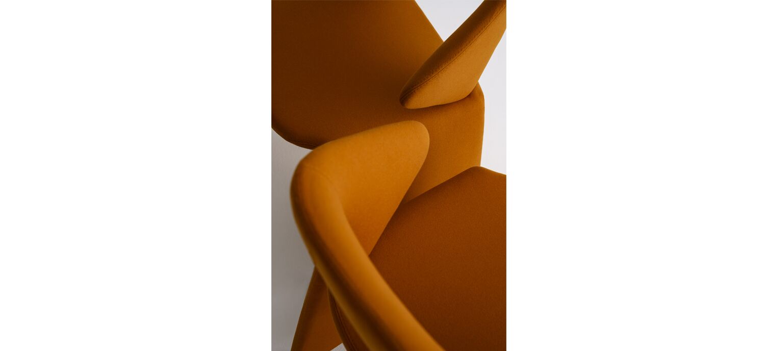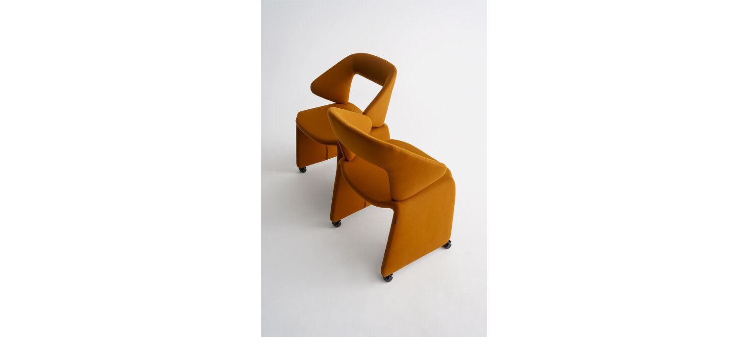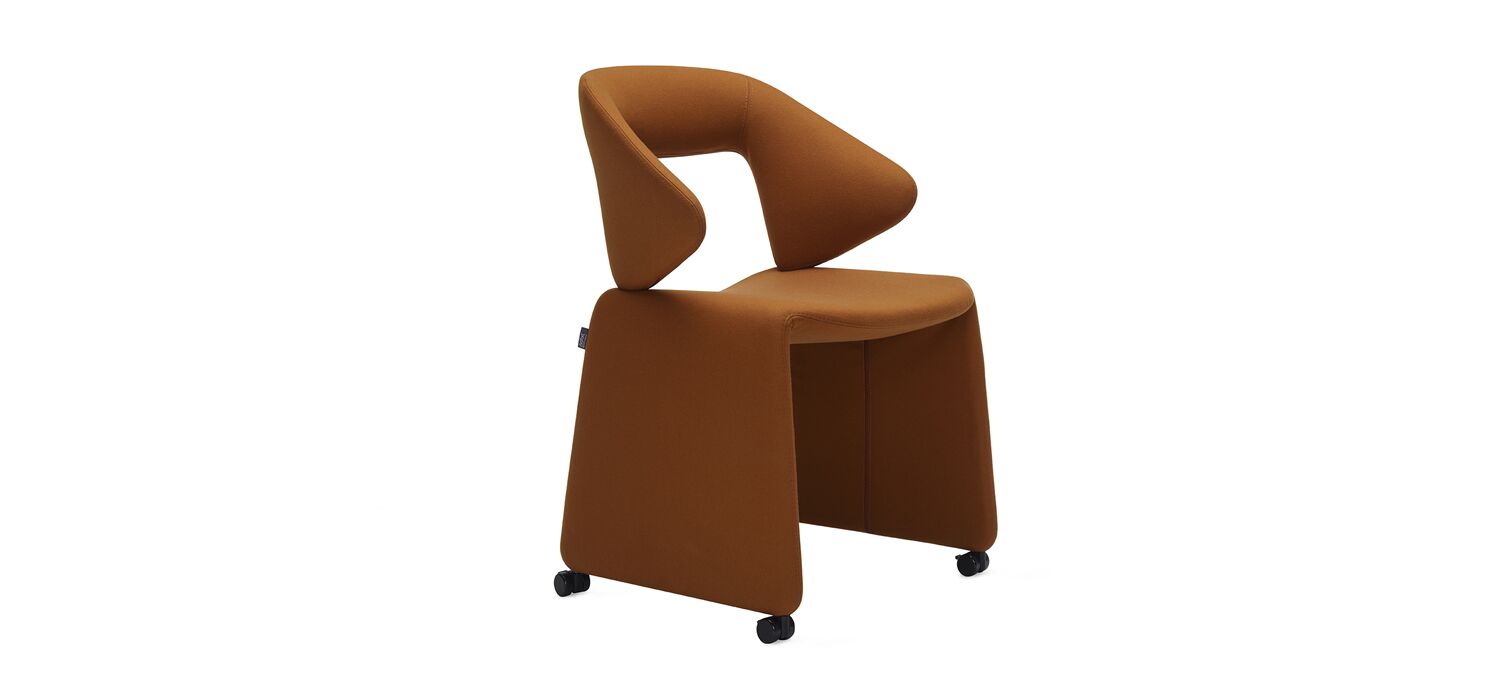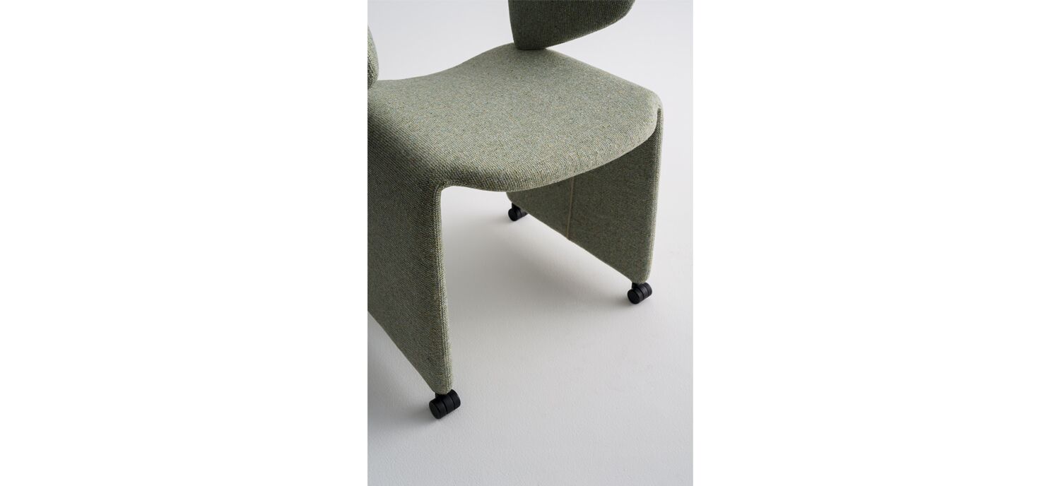 Offered through a partnership with Artifort located in Schijndel, The Netherlands, Suit chair's unique silhouette combines professional elegance with individual personality and brings a strong sense of style. Designed by Monica Forster, Suit is fully upholstered and contours the body to embrace the user like a tailor-made suit. The seat and back can be upholstered with complementary or contrasting textiles, allowing for a personalized identity. With an elegant open back, flowing lines, and smooth-rolling casters, this distinctive chair is a comfortable and inviting addition to hospitality, dining, and work environments.