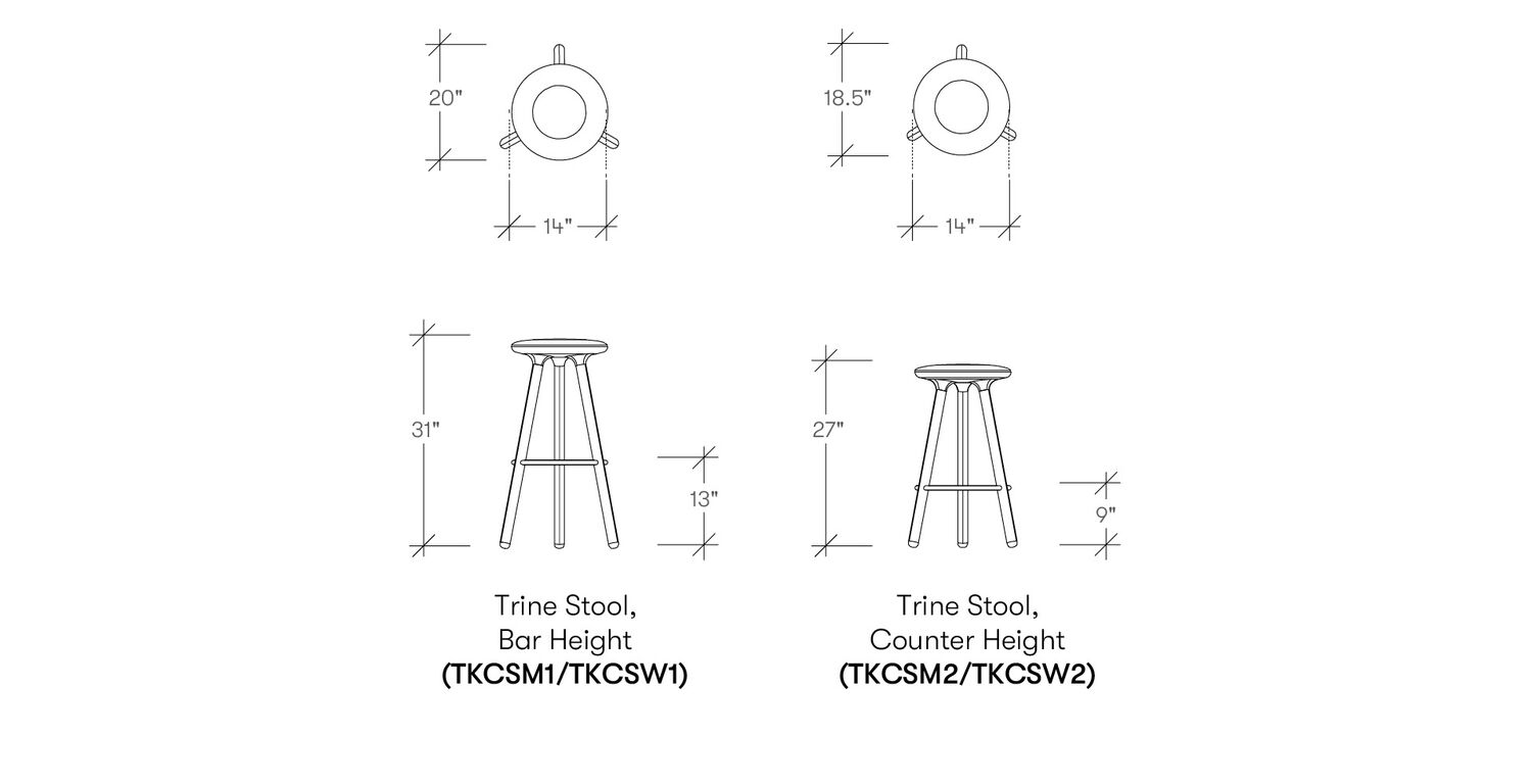 The Trine Stool, designed by Estudi Manel Molina, was inspired by the classic and iconic three-legged milking stools used on farms in Spain. Manel combined his experiences of growing up on a farm and his artisanal background to create an alluring stool that is as simple as it is complex. Trine takes fabric, metal, and wood to produce a breathtaking design where a unique metal base and footrest seamlessly intertwine with metal or wooden legs. Trine’s is available in two sizes, a bar height, and a counter height. When combined with Studio TK’s multiple textiles, wood finishes, and powder coating options, Trine brings flair to all residential, hospitality, and workplace applications.